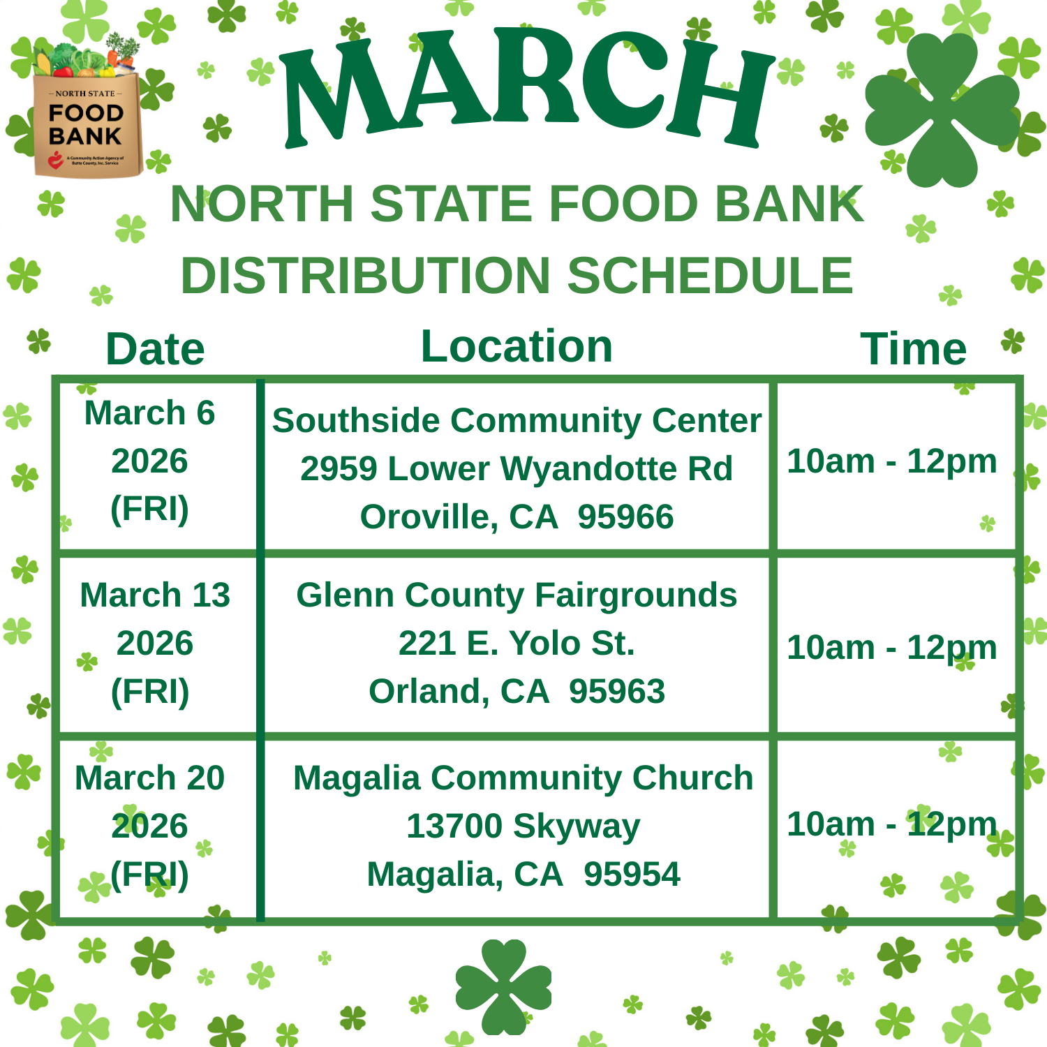 Food Distribution Calendars Drive Thru Food Distribution Calendar Commodity TEFAP Distribution Calendar 2026 Other Local Pantries Income Guidelines for TEFAP (as of June 2022) Looking for a way to give back? Volunteer at one of our food distributions!